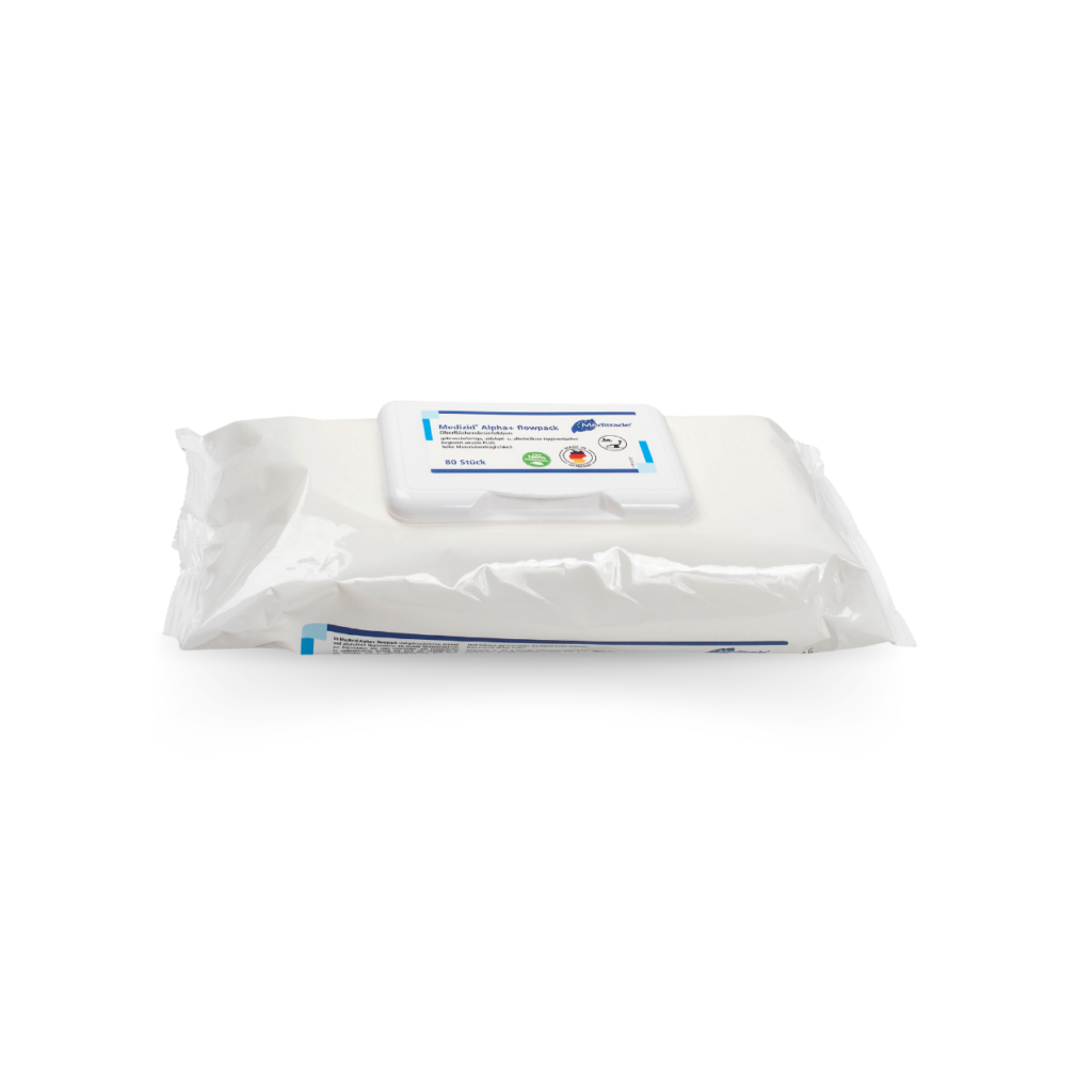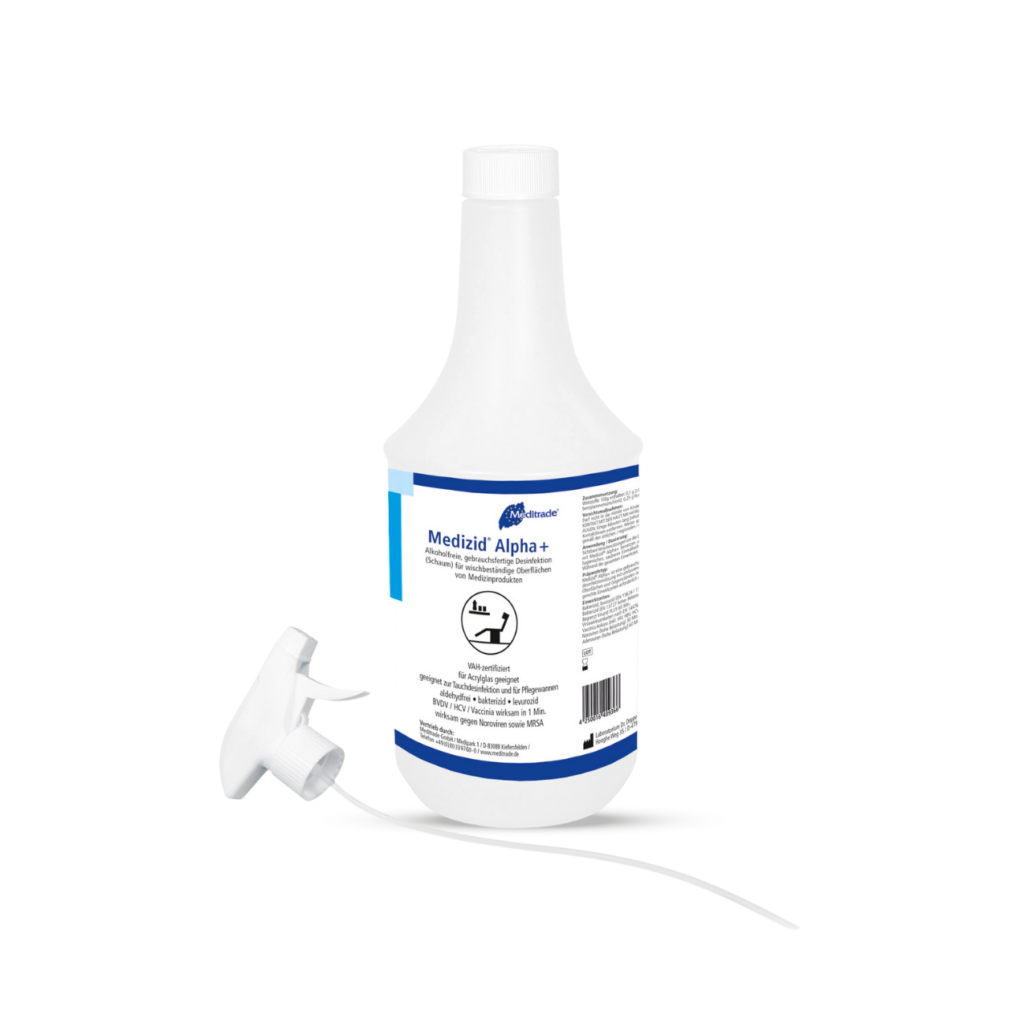3Oberflächen vollständig mit der Lösung benetzen und die Desinfektionslösung ggf. mit einem hygienischen, sauberen Einmaltuch verteilen.